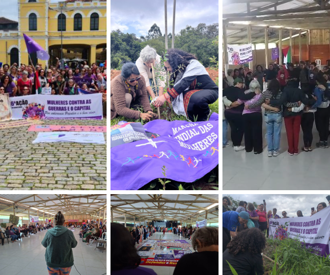 Entre fevereiro e outubro de 2025 foram as inúmeras atividades: de plenárias nacionais a estaduais e locais, ações de rua, encontros de formação, debate e rodas de conversa, feiras e mutirões, brechós, saraus, entre tantas outras atividades culturais e públicas que colocaram em pauta as experiências e resistências das mulheres nos 4 eixos temáticos da 6ª Ação: Defesa dos bens comuns contra as transnacionais; Economia feminista para a sustentabilidade da vida; Paz e desmilitarização e a Luta pelo fim da violência contra as mulheres, por autonomia dos nossos corpos e sexualidades.